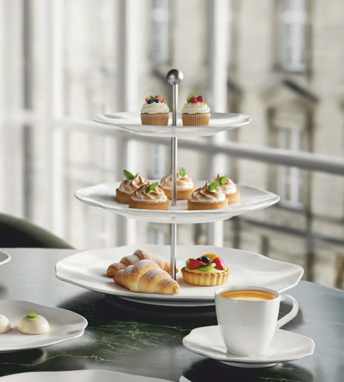 Die weiße Etagere aus der Serie Blossom. Sie ist aus hochwertigem und langlebigem Premium Bone Porzellan und ideal mit weiteren Villeroy & Boch Kollektionen kombinierbar. Die Etagere ist salamanderfest, mikrowellensicher und spülmaschinenfest. Mindestabnahmemenge: 1 Etagere (entspricht 1 Verpackungseinheit).
